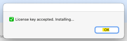 Step 33: When the prompt stating ‘License key accepted. Installing…’ shows click OK do not wait or it can timeout it won’t install the key until you click the OK button.