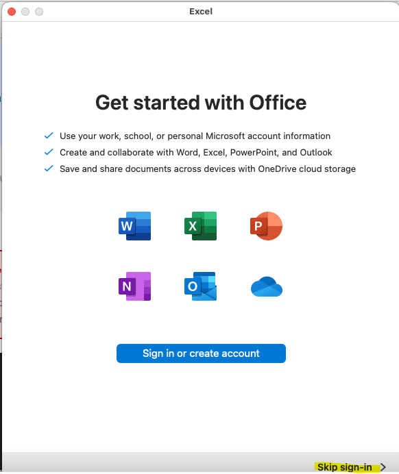 Step 35: Open an Office application ie Excel/Word then click ‘Skip Sign-in’